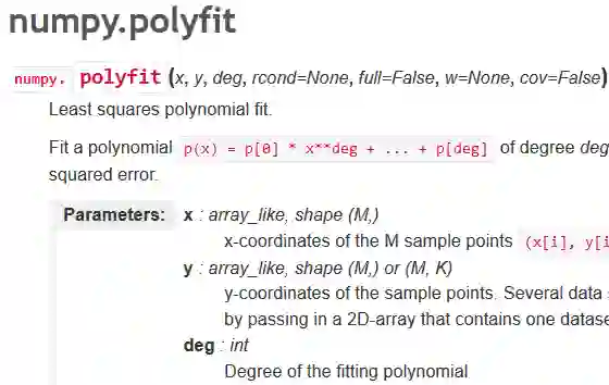 详细描述参考:https://docs.scipy.org/doc/numpy-1.13.0/reference/generated/numpy.polyfit.html。