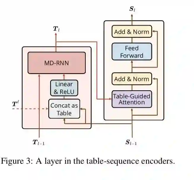 分别对table和sequence做表征(encoder),并设计了一个Table-Guided Attention来对table和sequence进行交互,这样即不会完全共享表征导致对不同的任务表征冲突,也不会丢失表征的相互指导作用