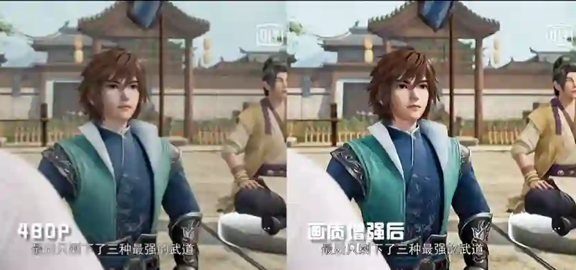 开启画质增强功能后,480P 及以下清晰度的视频可以秒变高清,大致相当于 1080P 的水平。