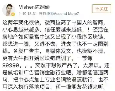 “每个想要学习区块链的人,都是想学习一些自己不知道的东西,而不是一些很容易就知道的基本概念,有些培训机构为了赚钱,简单从书里摘下来一些基本概念,请几个所谓的嘉宾来讲,就算培训了”。