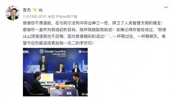李世石曾经的对手,曾经「绝代双骄」的另一人——中国围棋职业选手古力九段在得知这一消息之后,在社交平台上公开表示:「此刻只想给他一个大大的拥抱。」