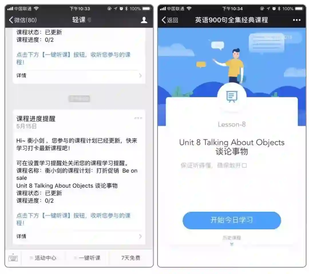 《英语900句》作为轻课的王牌课程,服务了数十万英语学习者。通过数据统计,凡是参加了此类金钱刺激活动的学员,60天课程完成率高达81%,将传统英语学习的数据提升了大概70%。