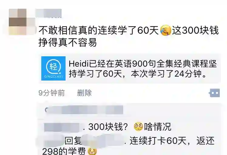 学习60天,支付298元,有效期长达半年,只要每天坚持学习,无需朋友圈打卡,退还100%的全部学费。