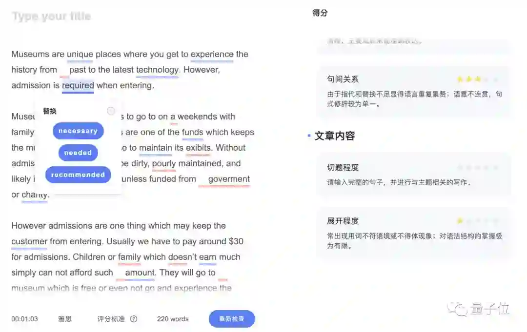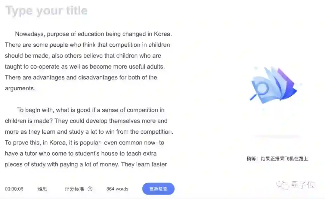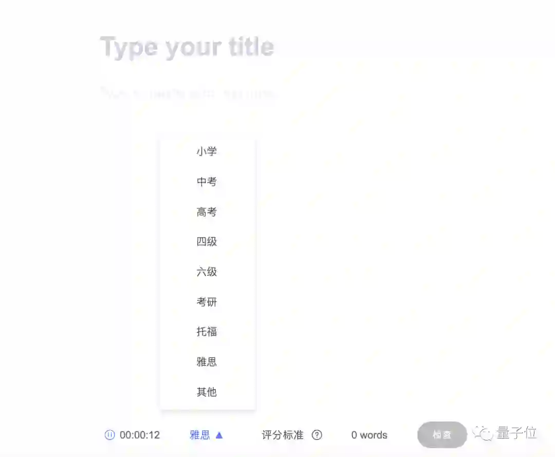 量子位在难度一栏选择了“雅思“,就开始进行写作了。