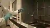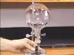原理:铯是活泼的碱金属,和水爆炸式反应生成氢气。高速摄影需要极强的光,光照产生的高温使得铯无法保持固态,因此实验采用安瓿来装液态铯。小锤击碎安瓿瞬间,铯液滴倾泻而出,在空中就和水蒸气、氧气反应留下尾迹,大块入水后产生爆炸式反应。