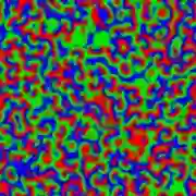 花絮:目前,对B-Z反应的动力学研究依然在进行中,研究者们也对反应过程进行了很多数学计算。下面就是一个计算机模拟出的平皿B-Z反应的图像,是不是感觉更加魔性了呢……