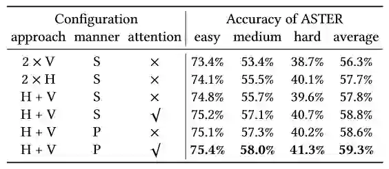 表 1 不同的上下文特征建模方法结果对比。V和H分别表示循环连接视觉的特征的不同方向,垂直或者水平。连接方式S和P分别表示串行连接和并行连接。注意力用的是通道注意力模块,作为循环连接后特征的信息门控