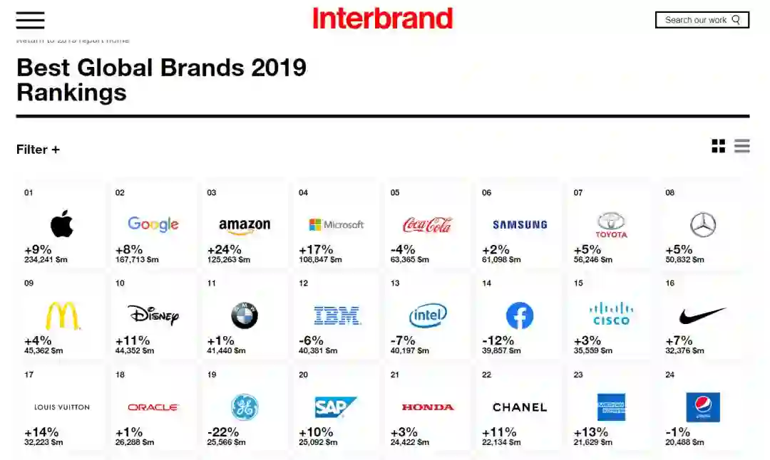 Interbrand《2019年全球最佳品牌榜》 图源:Interbrand官网