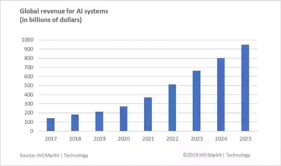 据IHS Markit估计,到2025年,涵盖硬件和软件的AI系统的全球收入将达到近1万亿美元,复合年增长率达28%。