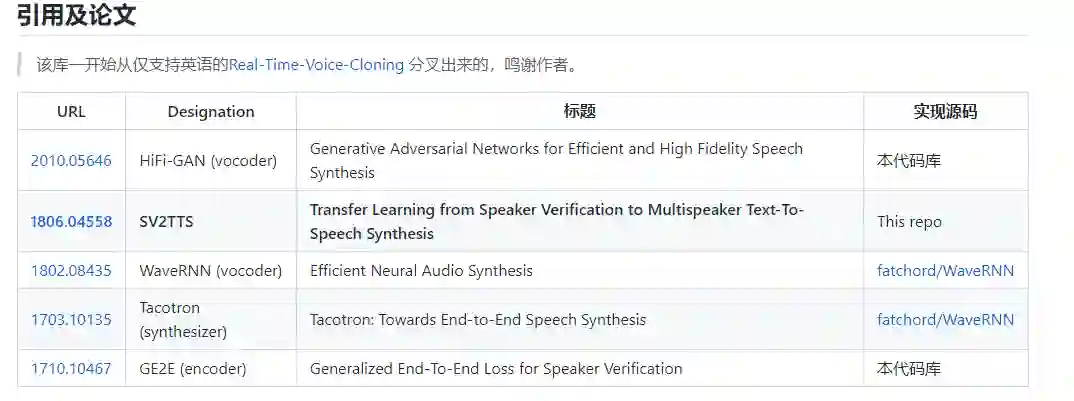 仅需下载或新训练合成器(synthesizer就有良好效果,复用预训练的编码器/声码器,或实时的HiFi-GAN作为vocoder)