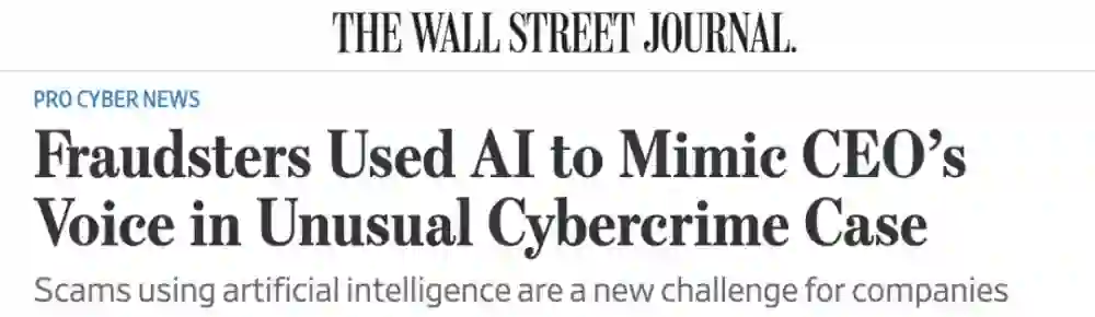 2019年,犯罪分子克隆了一家总部位于英国的能源公司CEO的声音,骗走了24万美元,原因就是这个假CEO在口音和语气上听起来都是十分真实的。这起事件是欧洲已知的第一起直接使用人工智能的网络犯罪。
