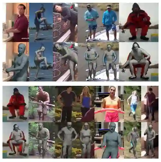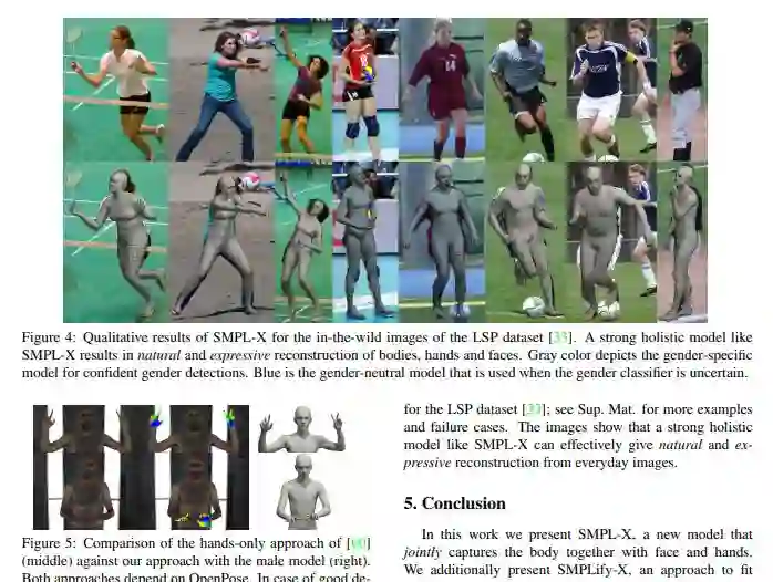 该论文检测与脸部,手部和脚部相对应的2D特征,并将完整的SMPL-X模型拟合到这些特征上;