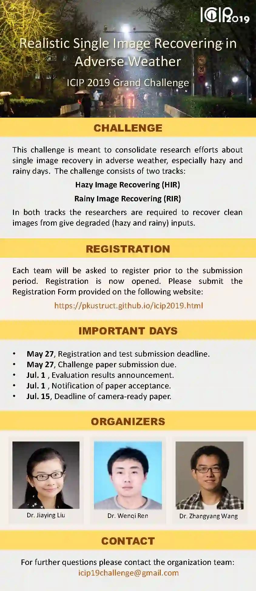 本次竞赛侧重雨天雾天图像恢复,欢迎大家报名参加。
