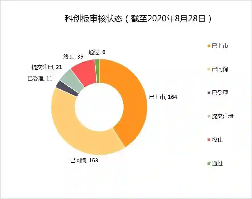 据上交所官网显示,截至8月28日,科创板已上市公司164家,已问询163家,受理11家,通过6家。