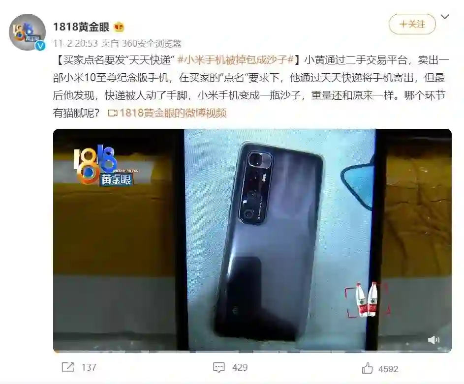 在交付快递发货的时候,你可以再拍一些照片和视频,最好能把快递单号等信息带到其中,这样可以避免成色和快递运输方面的纷争。而这,也是你手上最后的证据。