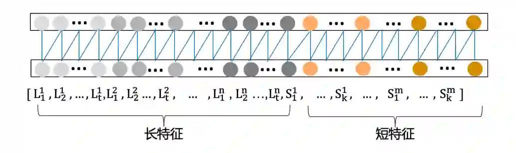 首先,对于输入部分的特征进行了 Flatten 处理,即将每个维度的时间序列依次首尾相连,如图所示,拼接成为一个长向量后作为输入。这样便实现了长特征和短特征的有效整合。