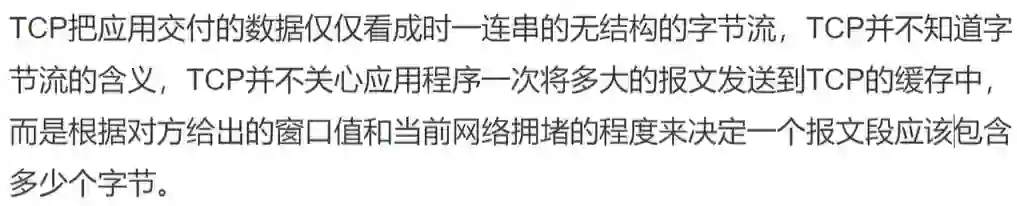 tcp是面向字节流,udp是面向报文的。UDP的数据传输是基于数据报的,TCP继承了IP层的特性,TCP为了维护状态,将一个个IP包变成了字节流。