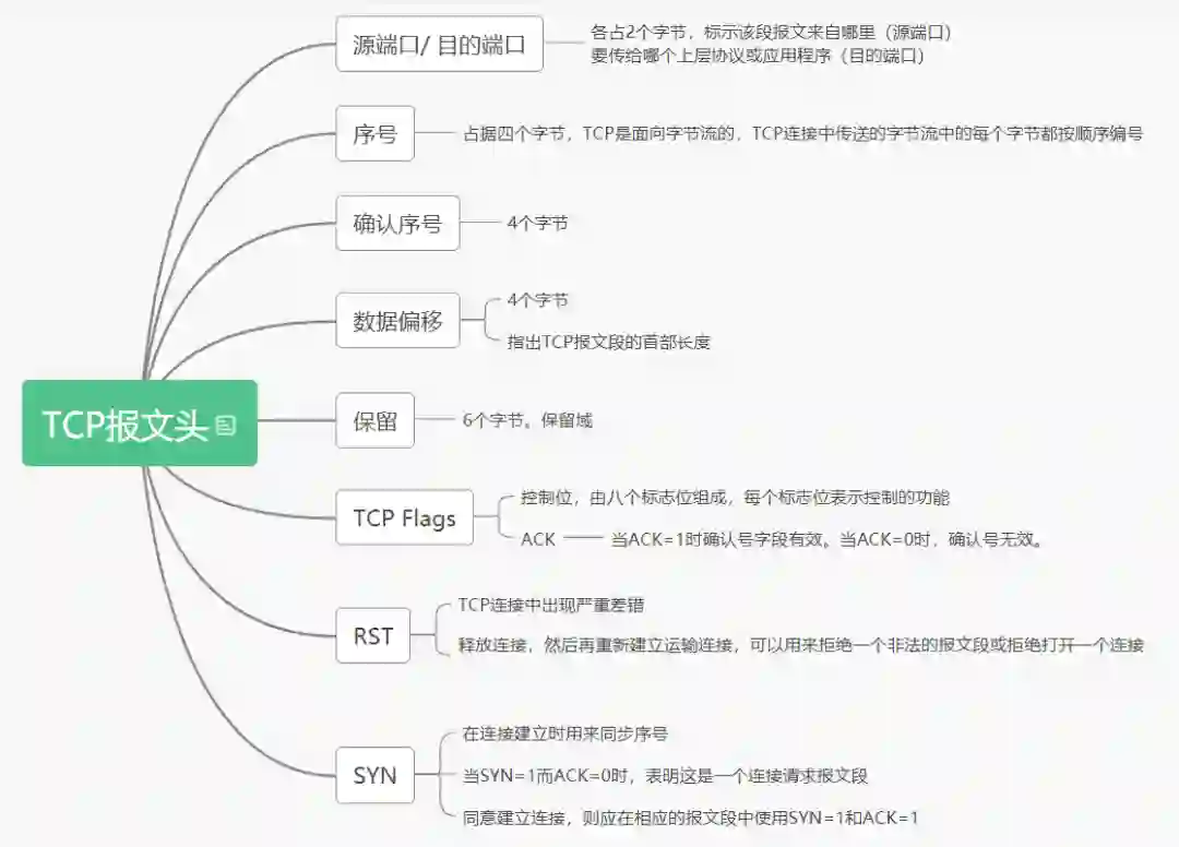 标志位:共6个,即URG、ACK、PSH、RST、SYN、FIN等