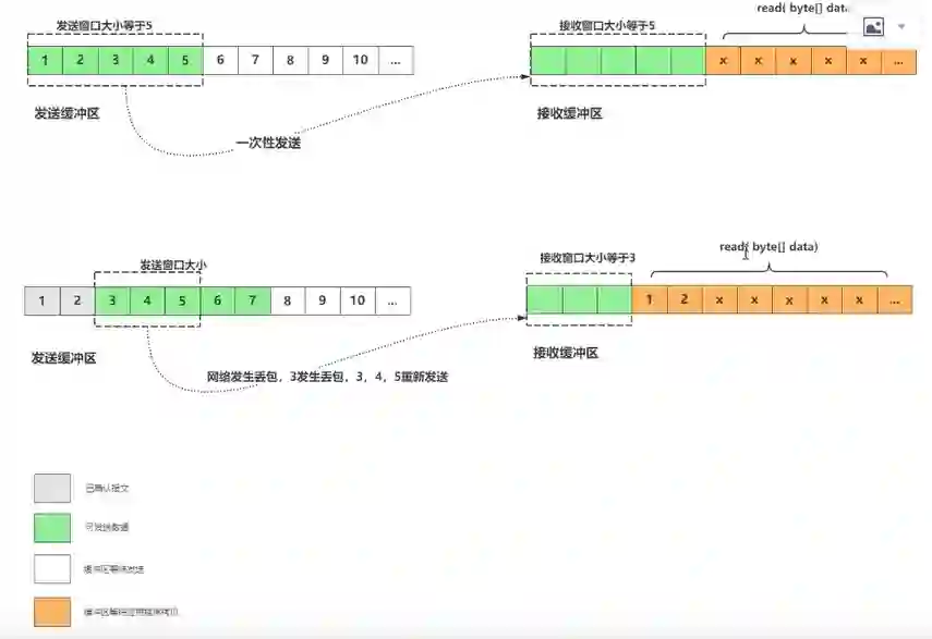 拥塞控制能防止过多的数据注入到网络中,用于避免网络过载,TCP中可以通过慢启动探索当前连接对应拥塞窗口的合适大小。即发送者发送数据的时候并非一开始注入大量数据到网络中,而是发送一个数据包进行测试,当得到确认回复后,额外发送一个未确认包。