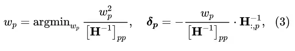为了在每一步中选择具有最小整体修剪损失的权重(即每行最小损失的最小值),需要将 OBS 框架应用于完整的权重矩阵