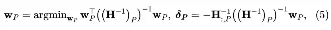 有了上述基础,我们现在可以利用分层修剪问题实例化本文的框架。首先,式(2)的损失是二次的,完全满足 OBS 框架的假设,这意味着式(3)对于分层压缩问题是精确的,不引入额外的误差。
