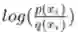 让我们看看 KL 散度各个部分的含义。首先看看项。如果 q(x_i) 大于 p(x_i) 会怎样呢?此时这个项的值为负,因为小于 1 的值的对数为负。另一方面,如果 q(x_i) 总是小于 p(x_i),那么该项的值为正。如果 p(x_i)=q(x_i) 则该项的值为 0。然后,为了使这个值为期望值,你要用 p(x_i) 来给这个对数项加权。也就是说,p(x_i) 有更高概率的匹配区域比低 p(x_i) 概率的匹配区域更加重要。
