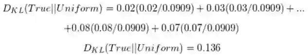发送分布比发送每只蠕虫的信息更高效。但我们还能进一步压缩数据大小。我们可以用一个已知的分布来表示这个分布(比如均匀分布、二项分布、正态分布)。举个例子,假如我们用均匀分布来表示真实分布,我们只需要发送两段数据就能恢复真实数据;均匀概率和蠕虫数量。但我们怎样才能知道哪种分布能更好地解释真实分布呢?这就是 KL 散度的用武之地。