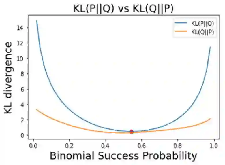 其中 q(x) 是近似分布,p(x) 是我们想要用 q(x) 匹配的真实分布。直观地说,这衡量的是给定任意分布偏离真实分布的程度。如果两个分布完全匹配,那么,否则它的取值应该是在 0 到无穷大(inf)之间。KL 散度越小,真实分布与近似分布之间的匹配就越好。