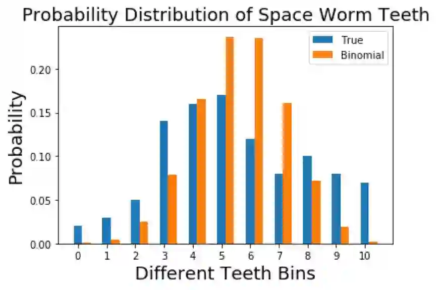 现在回头看看我们已经完成的工作。首先,我们理解了我们想要解决的问题。我们的问题是将特定类型的太空蠕虫的牙齿数据统计用尽量小的数据量发回地球。为此,我们想到用某个已知分布来表示真实的蠕虫统计数据,这样我们就可以只发送该分布的参数,而无需发送真实统计数据。我们检查了两种类型的分布,得到了以下结果。