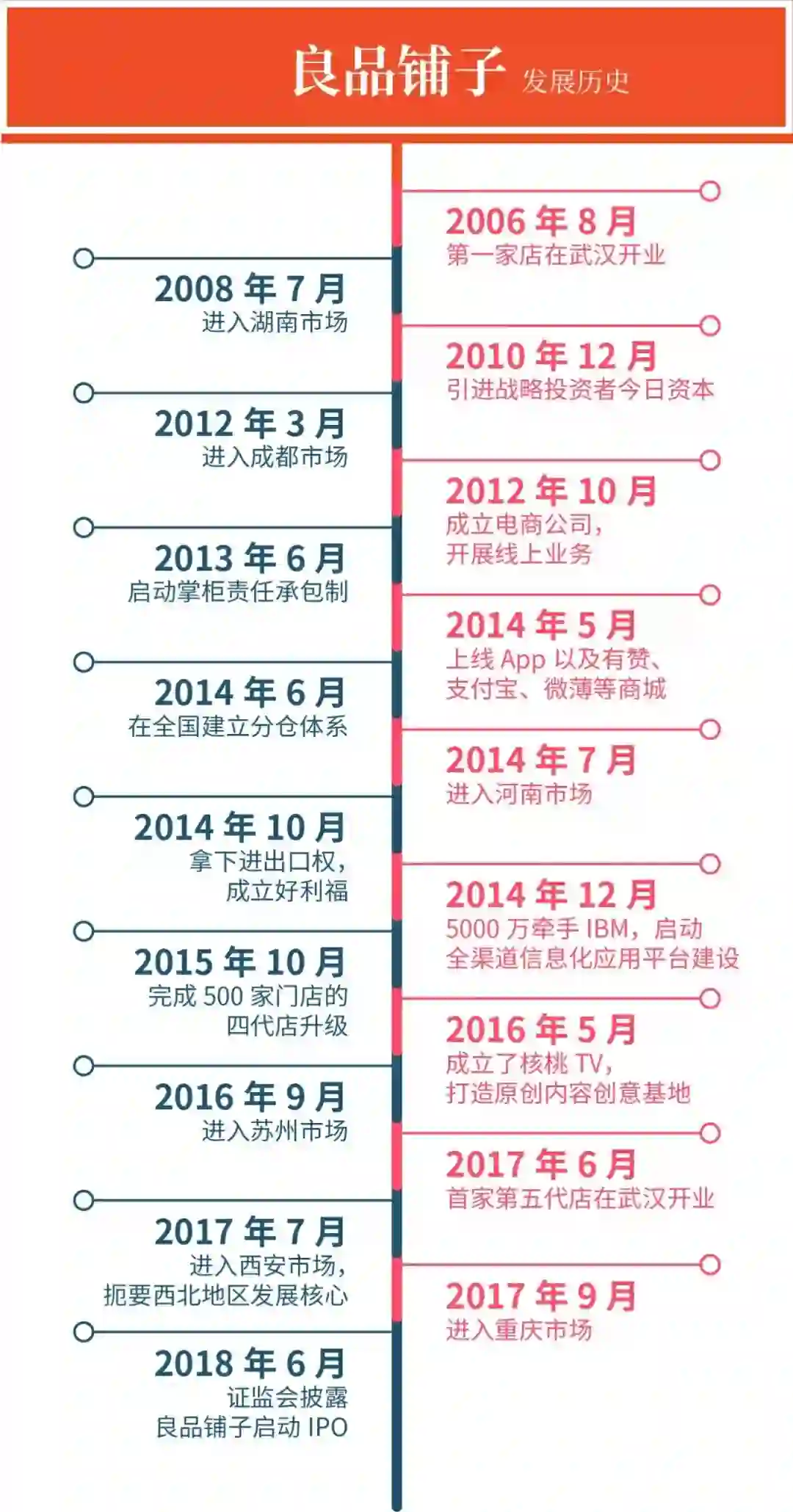 截止目前,良品铺子已经建立了智慧门店、平台电商、O2O外卖、自营App等全方位的互动和销售渠道,会员4000多万,月活800万,2017年营收54.24亿元。2018年6月,良品铺子在证监会网站披露招股说明书。