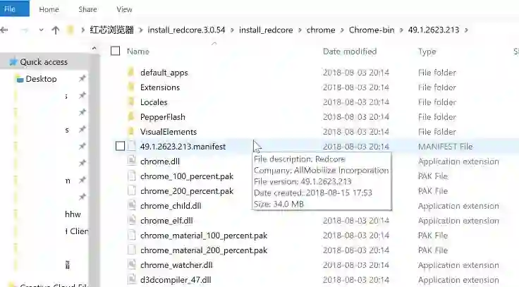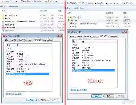 安装目录(左边为“红芯”,右边为“Chrome”)