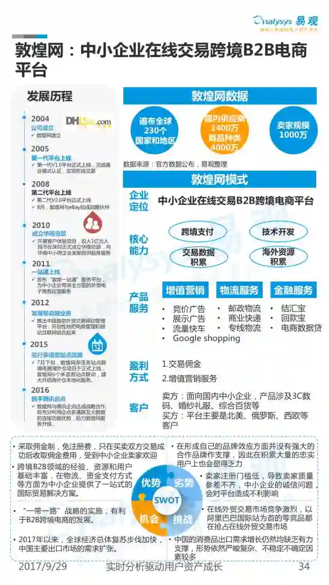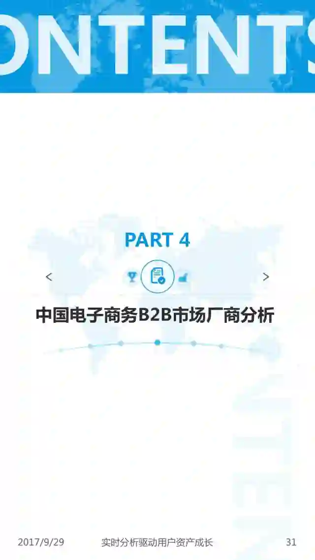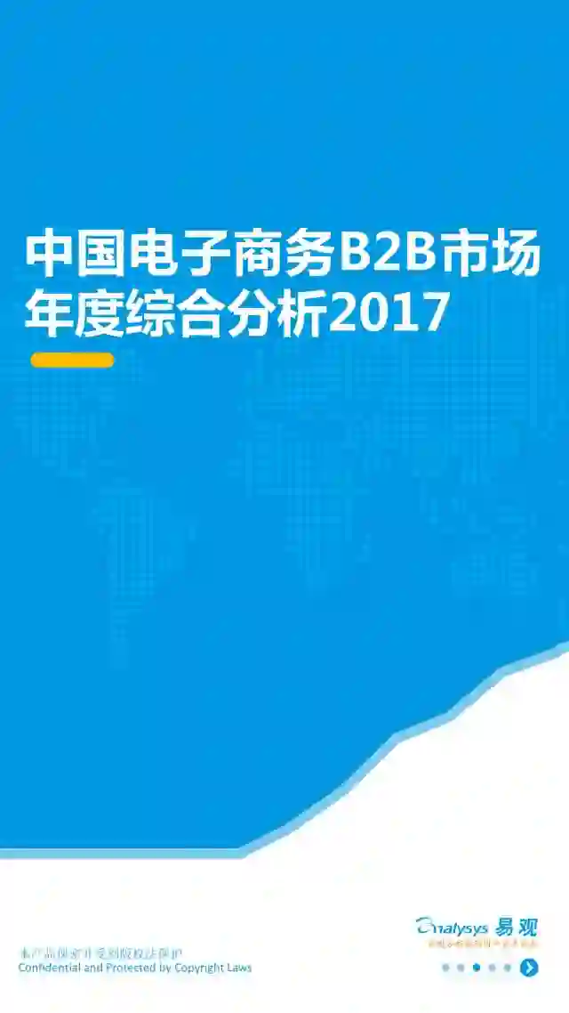 本报告分析了中国电子商务B2B市场的宏观环境、市场现状以及市场规模,并从综合B2B电商和垂直B2B电商两方面进行划分,分别分析了其发展阶段、运营模式、代表厂商情况。最后对电子商务B2B市场的发展趋势进行了展望。