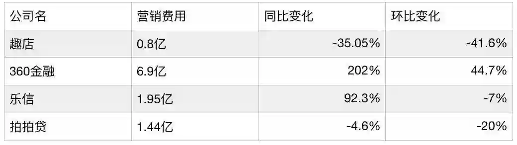 与此同时,我们在此前聊新金融上市公司一季报时就提到过,几家头部公司中,只有360金融一家加大了市场营销投入,其他几家都呈现保守收缩的态势。非上市公司们也遭遇「资本寒冬」,没有充足的「子弹」进行投放。