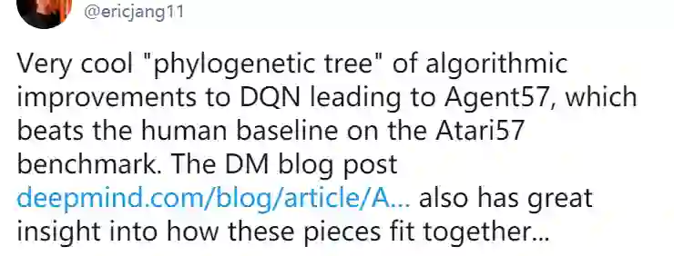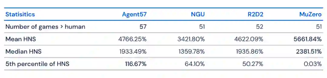让单个智能体完成尽可能多的任务是 DeepMind 一直以来的研究目标,也被该公司视为迈向通用人工智能的必经之路。去年,DeepMind 推出的 MuZero 在 51 款雅达利游戏中实现了超越人类的表现。时隔数月,DeepMind 在这一方向上更进一步,在 57 款雅达利游戏中全面超越人类,在这一领域尚属首次。