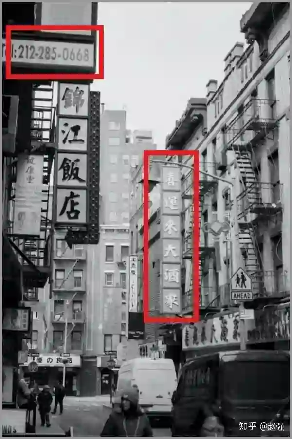 但是我相信没人会意识到「锦江饭店」上面还有一串「电话号码」,也不会意识到「喜运来大酒家」,如下图: