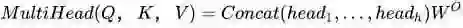 3)多头Attention,这是Attention is All You Need中提到的multi-head attention,用到了多个query对一段原文进行了多次attention,每个query都关注到原文的不同部分,相当于重复做多次单层attention: