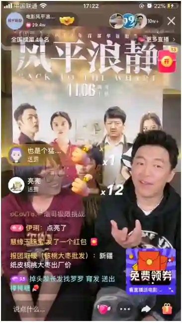 10 月 28 日晚上,黄渤在快手直播宣传自己监制的电影《风平浪静》。这场直播的总观看人数达到 1105.2 万,点赞数 1465.7 万,快手老铁们一夜间抢光了快手联合猫眼送出的 100 万电影代金券。