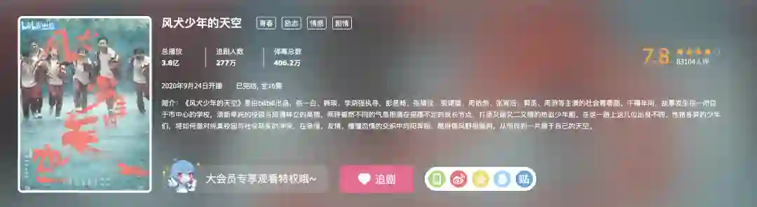 《风犬少年的天空》B站界面