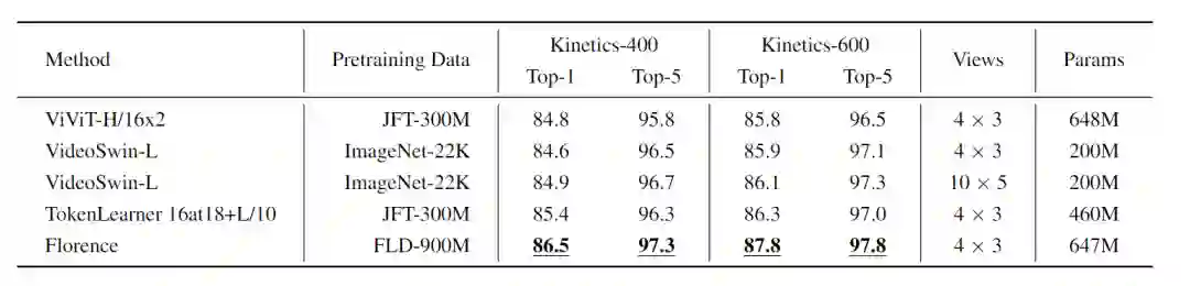 与其他ensemble模型相比,Florence模型使用的是一个单模型,并且还取得了更好的性能。