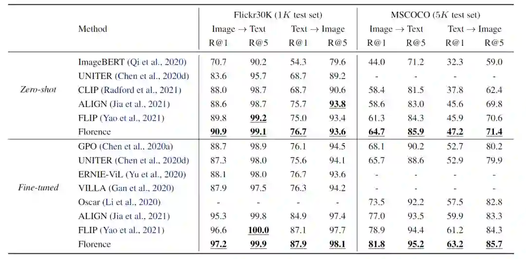 Florence的性能优于之前在两个数据集上取得的所有结果。