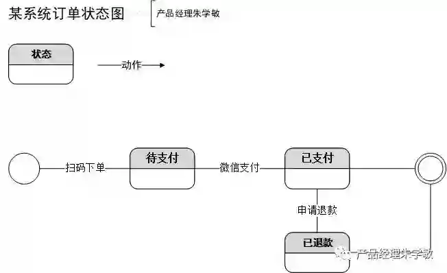 以某共享充电移动端为例,客户完成扫码充电的订单对象的生存期间的状态序列,引起转移的事件,以及因状态转移而伴随的动作。从扫码充电订单状态从待支付,已支付到已退款都是一个完整的业务闭环。但实际应用中并不是所有的类都需要画状态图,有明确意义的状态,在不同状态下行为有所不同的类才需要画状态图。