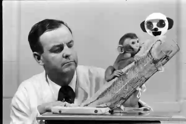这种说法最著名的例子就是“恒河猴实验”。1958年,心理学家Harry Harlow将恒河猴宝宝同同两个假猴子放在一起,其中一个是挂有奶瓶的铁丝妈妈,另一个是没有奶瓶的毛绒妈妈。结果发现猴宝宝宁愿饿着肚子也要和毛绒妈妈长相厮守,而在缺少毛绒妈妈的环境里,它们变得更加烦躁和不安。Harlow认为这说明肌肤接触对个体发展具有非常重要的影响。