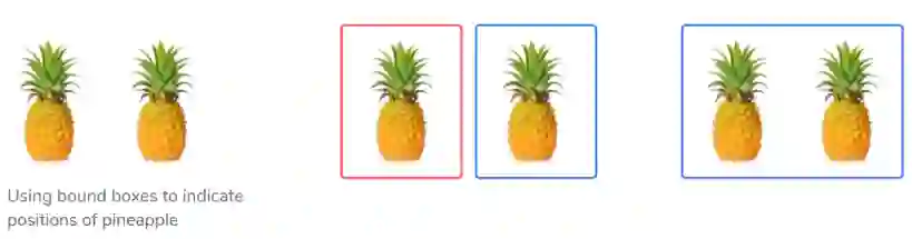 上图中是另一种标注数据的方式,单独或组合标注。例如,如果数据科学家 1 单独标注菠萝,而数据科学家 2 将其组合标注,则两者标注的数据不兼容,导致学习算法变得混乱。因此,需要将数据标签保持一致;如果需要单独标注,请确保所有标注都以相同的方式进行。