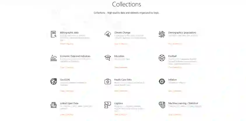 其次是 Datahub.io:Datahub 是一个主要专注于商业和金融的数据集平台。许多数据集,例如国家、人口和地理边界列表,目前在 DataHub 上可用。