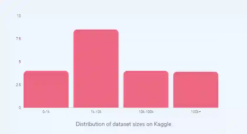 如上图所示,大多数 Kaggle 数据集并没有那么大。在以数据为中心的方法中,数据集的大小并不那么重要,并且可以使用质量较小的数据集完成更多的工作。不过需要注意的是,数据质量高且标注正确。