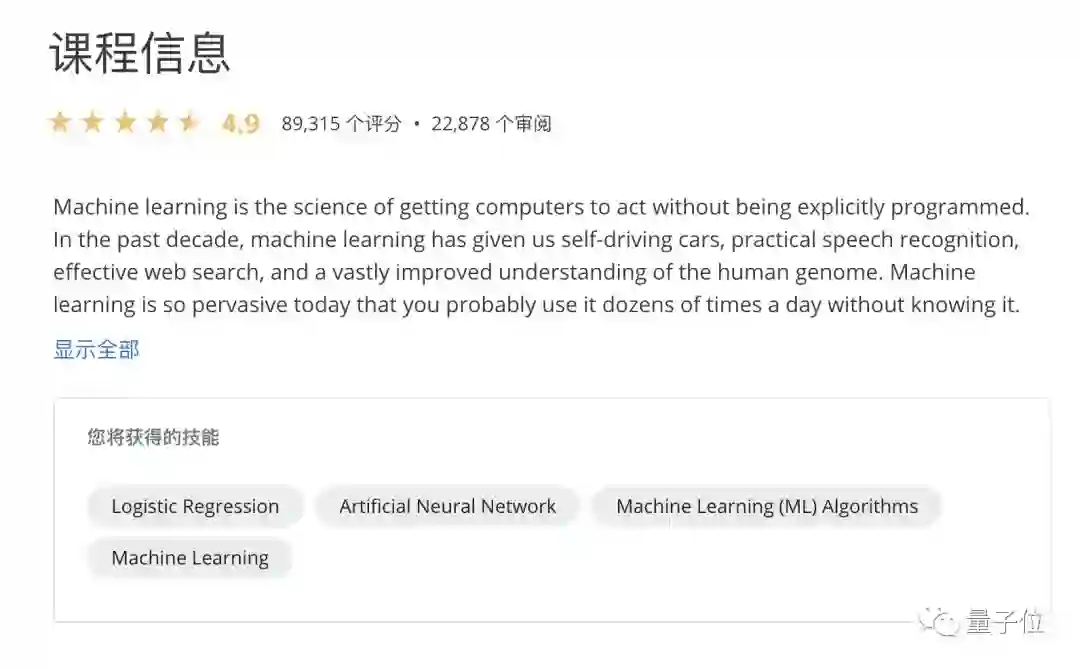 要说网课明星主讲人,还是非吴恩达老师莫属。这套面向初级选手的课程的课程用时只需7小时,门槛低。