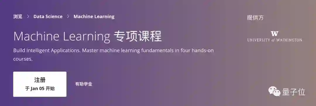 这版机器学习课来自华盛顿大学,内含四门子课程,分别为机器学习案例研究方法、回归、分类和聚类和检索问题。