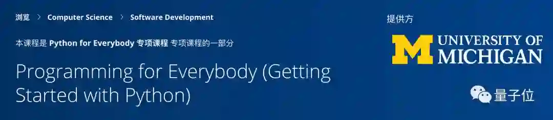 这套课程来自密歇根大学,主要介绍Python编程基础知识。课程介绍中还强调,面向小白,只要了解最简单的基础数学知识即可。