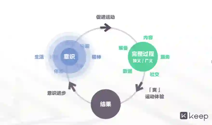 这里的运动解决方案是指,传统运动品牌能为用户解决运动的意识和装备,但用户还不一定会去运动,而Keep要做的就是通过它的内容、服务和社交等产品,让用户真正“动”起来。