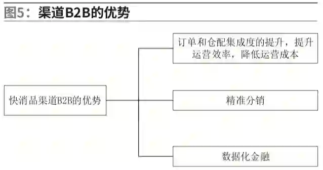 从上述分析研究可以看出,仓配一体化在B2B平台中的价值主要是相对于传统渠道而言。快消品渠道B2B与传统渠道B2B相比,主要有以下三个方面的提升,如图5。